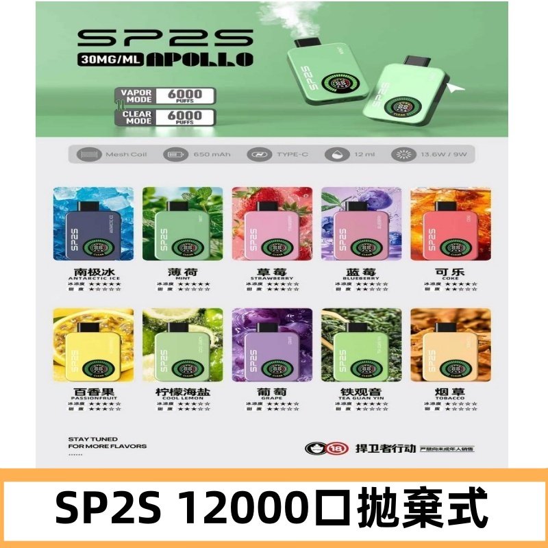 SP2S Apollo12000口拋棄式電子煙|新款重磅上市
